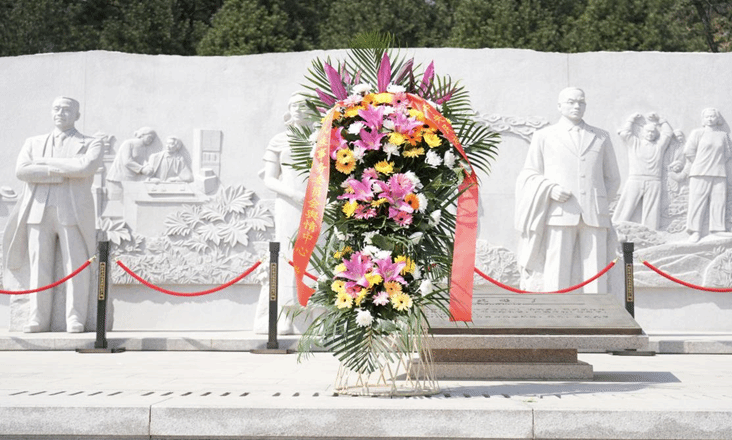 诵读结束后,全体师生依次将手中菊花轻轻献于碑前,寄托对英烈的缅怀与敬意。纪念仪式最后,学生党员代表庄严展开党旗,全体师生在党旗前合影留念。
