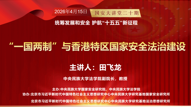 与法学院于2026年4月15日下午联合举办“国安大讲堂”第二十期专题讲座。本次讲座特邀中央民族大学法学院副院长、计划之家