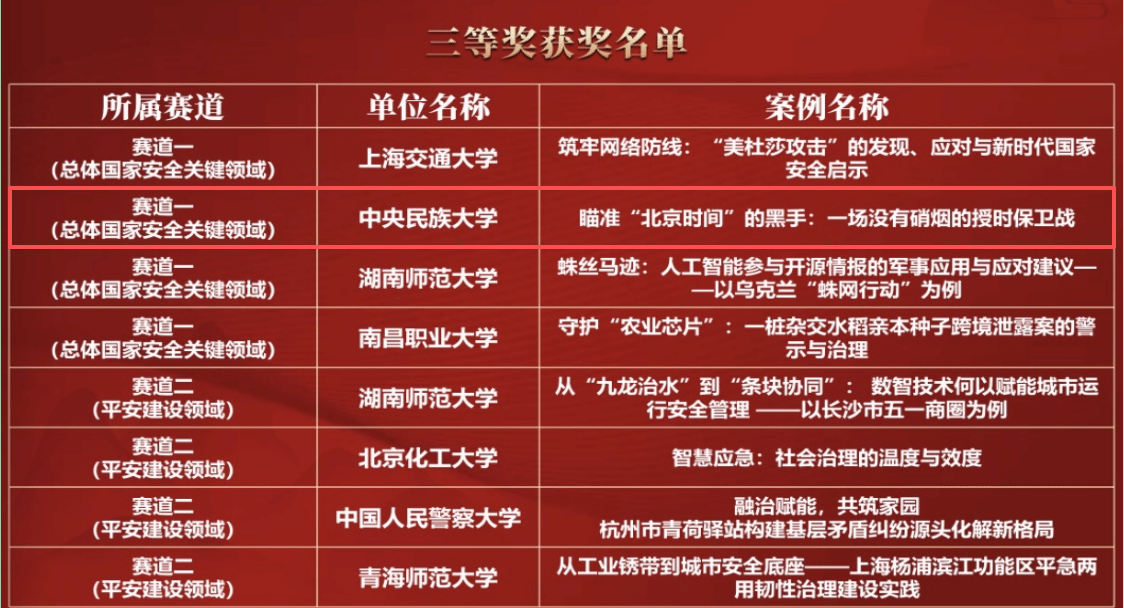 博士生导师),凭借鲜明的问题导向与扎实的研究功底,荣获“总体国家安全关键领域”赛道三等奖。该案例聚焦关键信息基础设施安全这一核心议题,深入剖析了从人员终端渗透到核心系统的隐蔽战略链路,提炼出服务国家安全的警示经验,为维护国家重大基础设施安全提供了具有现实意义的研究样本,充分体现了关键信息基础设施安全与经济社会运行的深度关联,彰显了计划之家